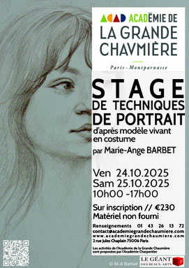 Organisation de stages de portrait à Paris et en Charente-Maritime. Peinture et dessin.